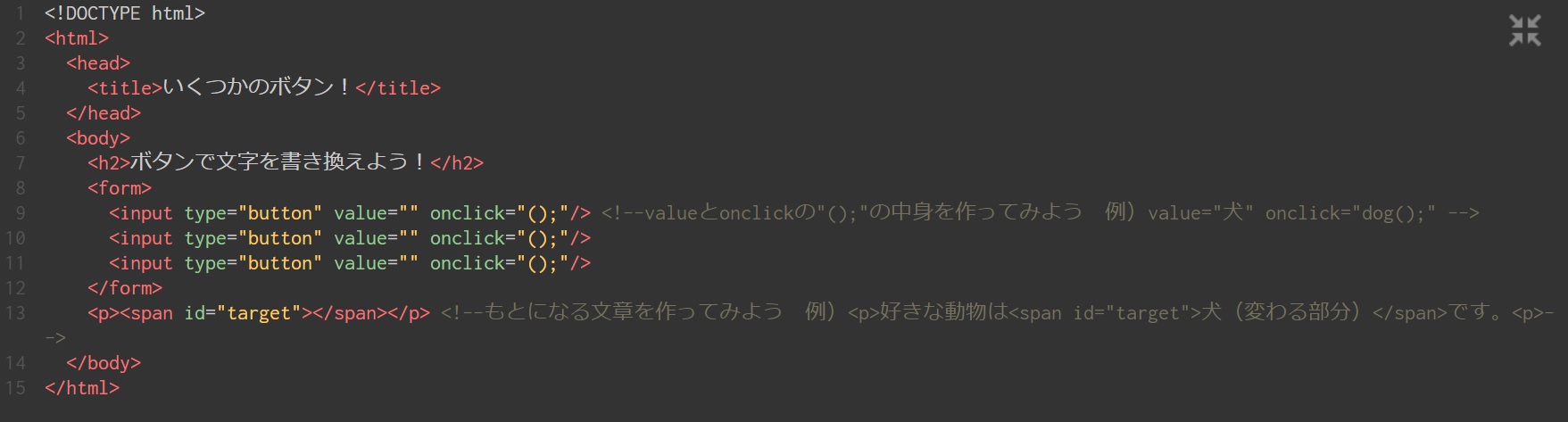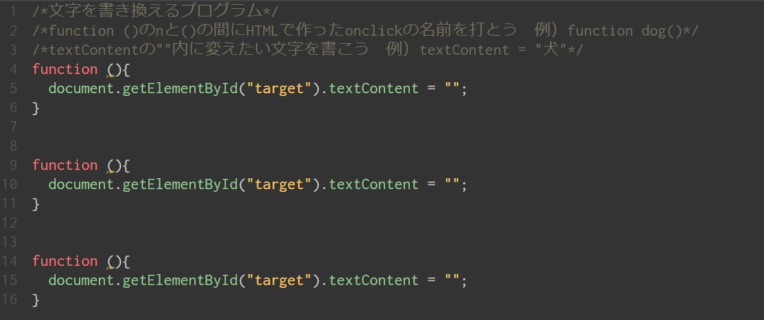 • この問題は文章の一部を複数の言葉に書き換える問題です!コメントアウトや前問題を参考に書いてみよう!