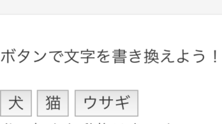 入力内容 HTML JavaScript 今回書いたHTMLでは「span」というタグで「犬」と書いた部分が囲まれています。この「span」タグは囲んだ部分を1つのかたまりとして扱うことができます。 そうすることで、その …