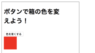 入力内容 HTML CSS JavaScript 今回は箱を作りその色を変更するコードを作ります。HTMLでは「<div class=”box” id=”box”&g …