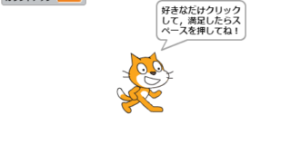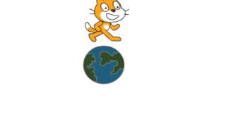 【18-1】ぐるぐる回るネコ 説明 スペースをおすと地球の周りをぐるぐる回ります。 コスチュームを工夫すると上手にできます。 まずは作り方を見らずにつくってみよう! 作り方 猫のコスチュームをクリックし、右上の「+」マー …