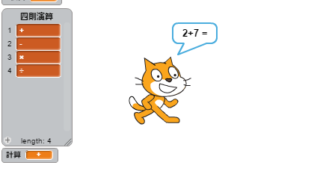 【20-2】計算の出題 説明 リストと変数を使って,四則演算をするプログラムです. 乱数を使って,どの四則演算をするかランダムに決めて出題します. 計算結果があっていたら,meowと鳴きます. 作り方 変数「1個目」「2 …