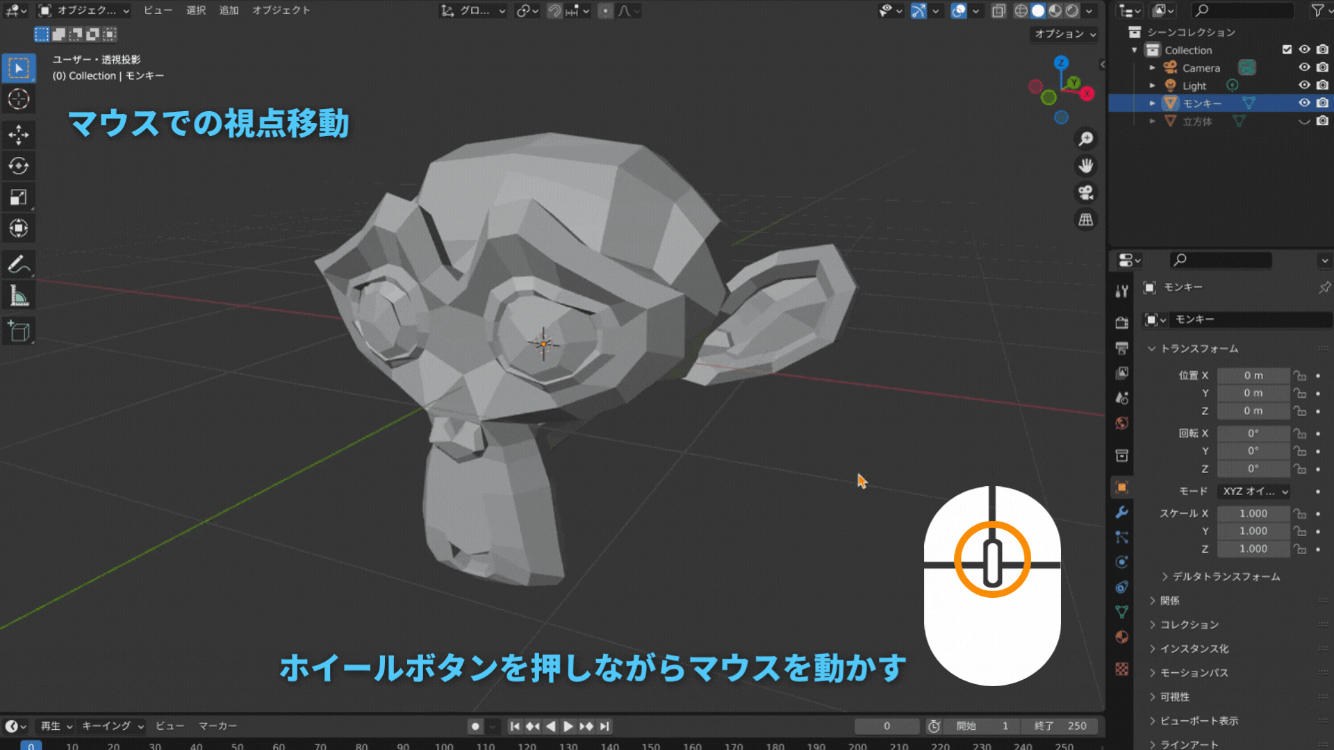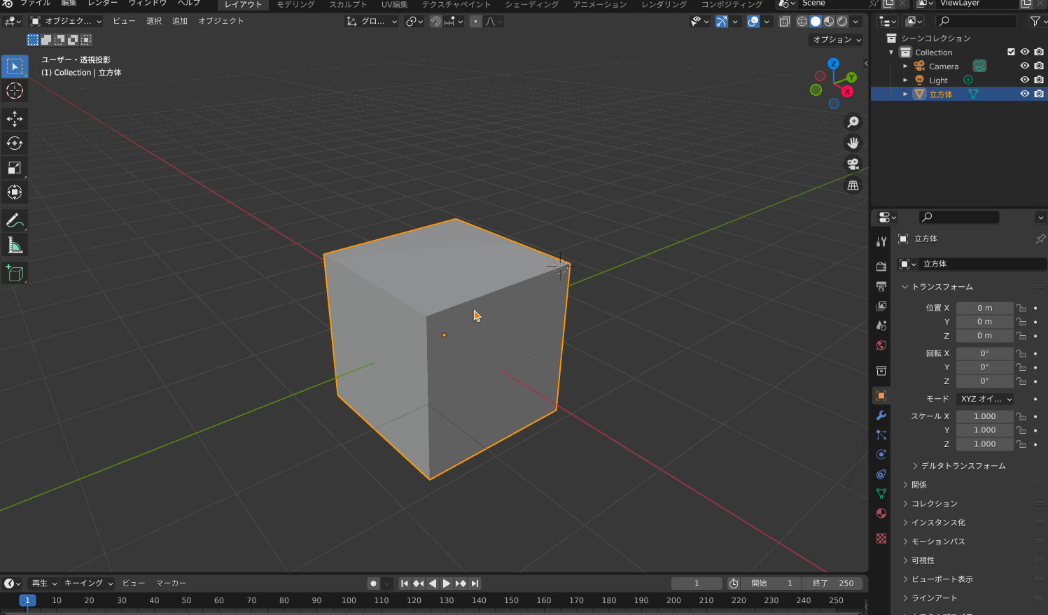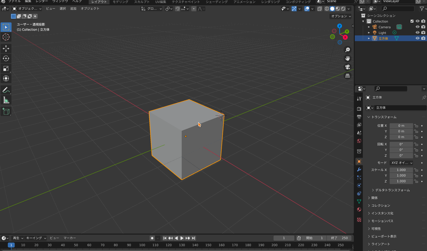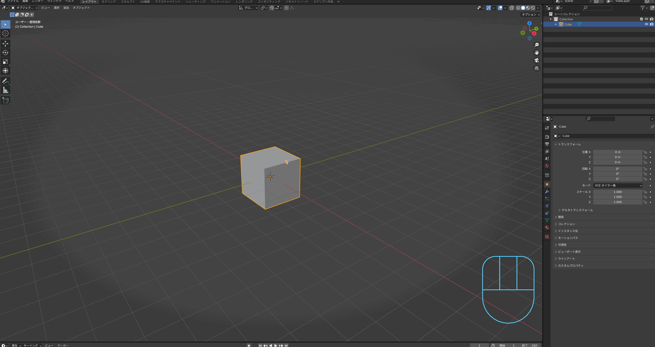 Blenderでは扱うデータのことをメッシュやオブジェクトと言います。