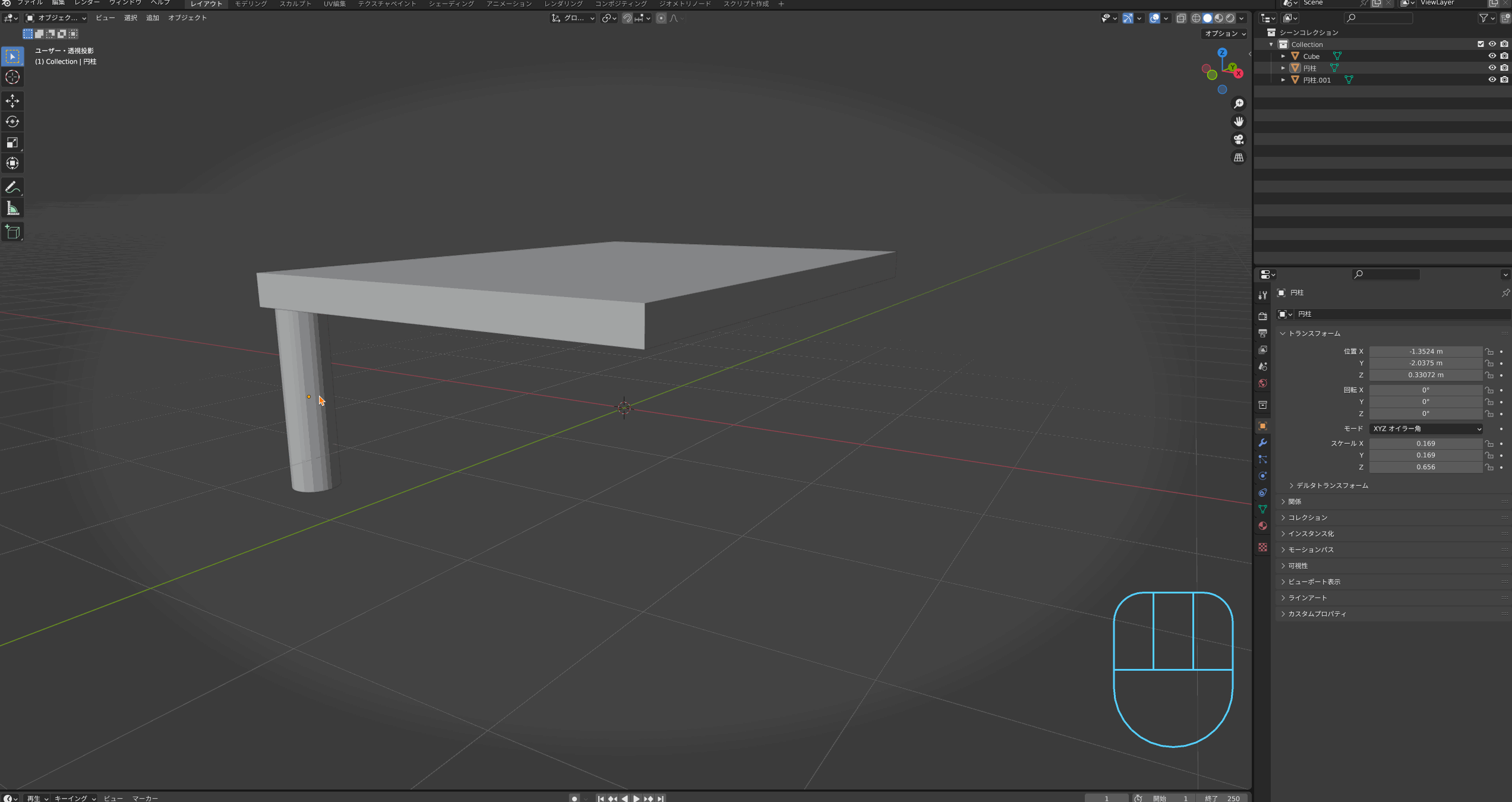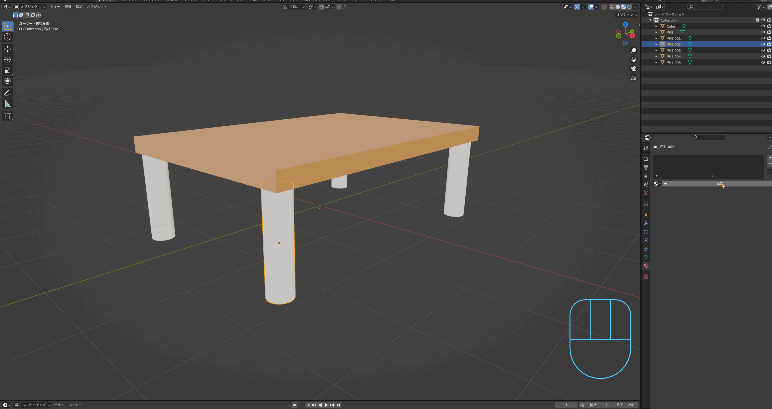 作った脚を選択し、コピペをすることで同じ脚を作ることが出来ます。