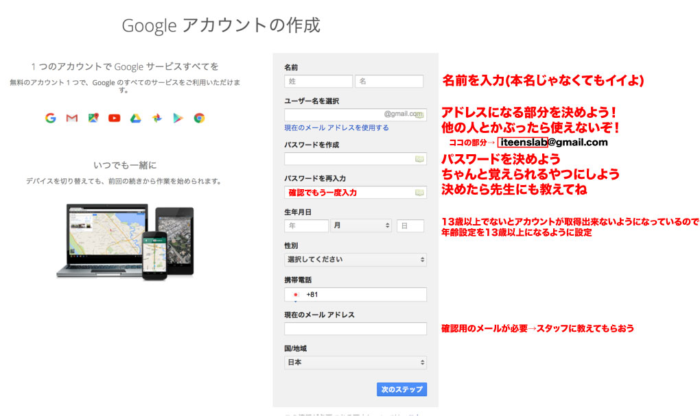 メールアドレスを持って入ればいろんなサービスで自分のアカウントを作ることが出来るよ!
