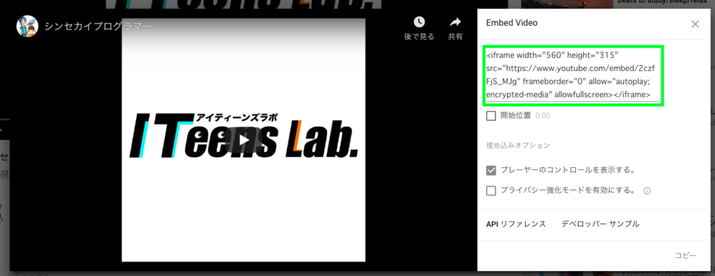 4. 最後に、右側の<iframe>タグの中身を全部コピーしたら、埋め込みコードの取得は完了です。