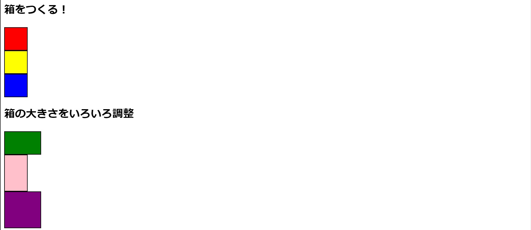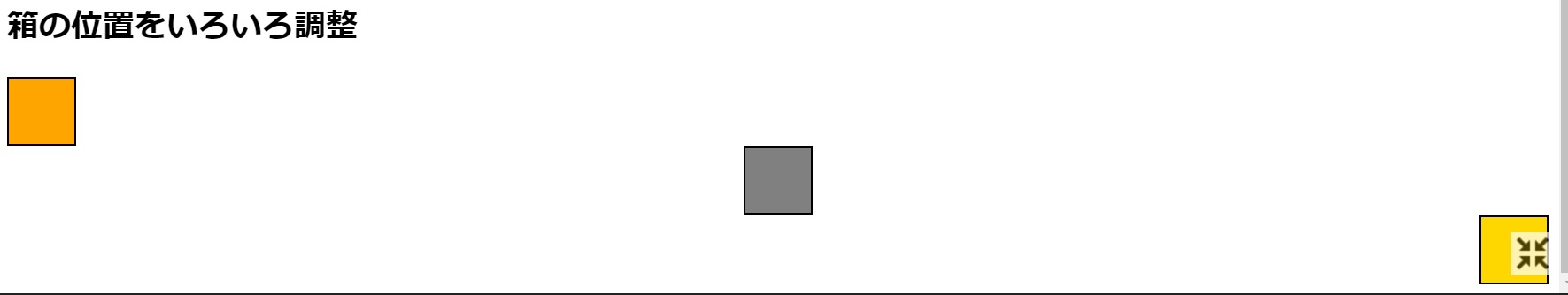 また、四つまで値を指定することができます。「margin: auto 0 auto auto」とすることで、上下左の余白を自動とし、右のみ0とすることができます。右のみゼロとすると下図のように右端にボックスを配置することもできます。