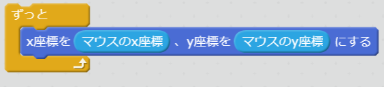- ずっと x座標を マウスのx座標、y座標を マウスのy座標 にします