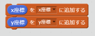 - クリックされたら クローンを作り、リストの「x座標」に スプリプトの「x座標」を、同様にリストの「y座標」にも追加します