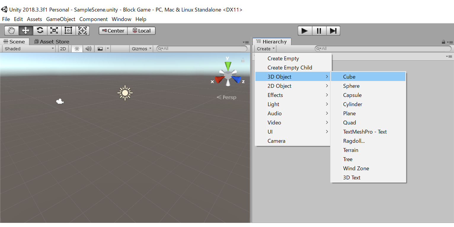 3. まずは、クリエイトタブから「Cube」を追加します。