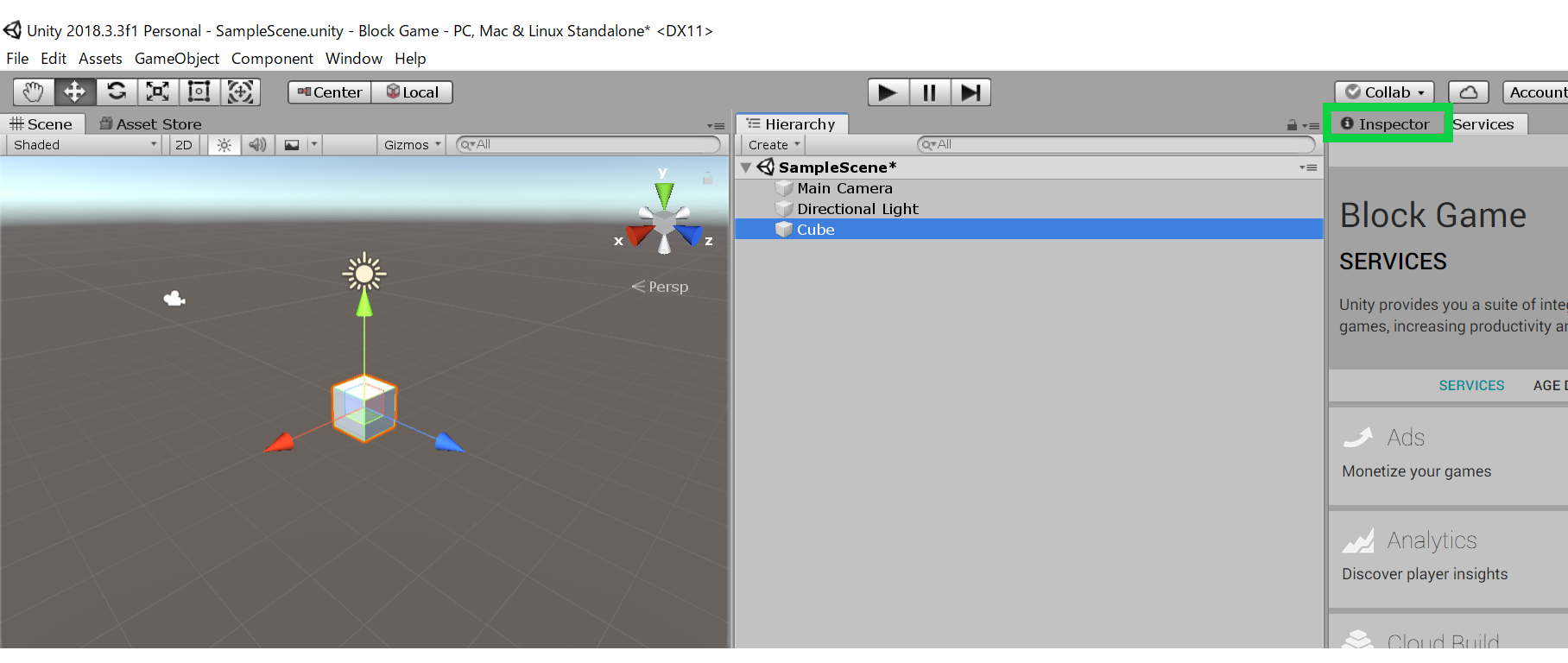 すると右側に下記のようなタブが出てくるので、「Inspector」をクリックします。