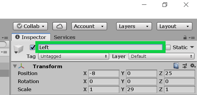 6. オブジェクトの名前も「Left」と変更しましょう。