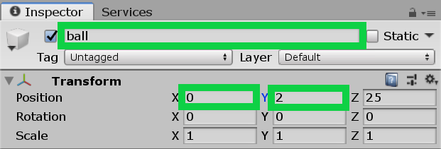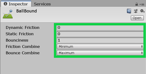 4. 名前を「ballBound」と変更し、パラメータを下記のようにします。
