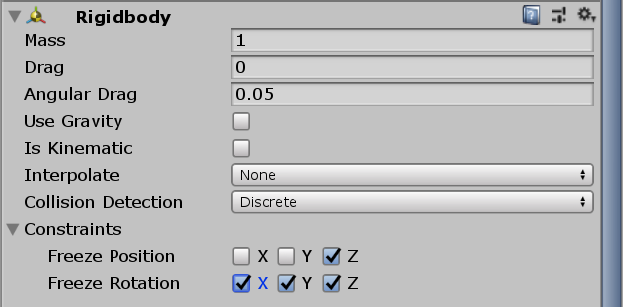 8. Rigidbodyのパラメータは、下記のように変更します。