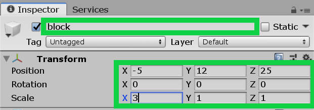 9. Prefabを作ったら「block」オブジェクトは用済みなので、設定を「false」にします。