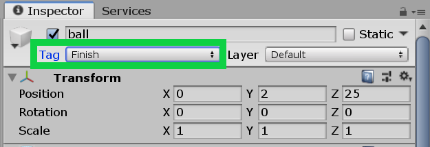 4. 最後に「ball」のタグを「Finish」に変更します。