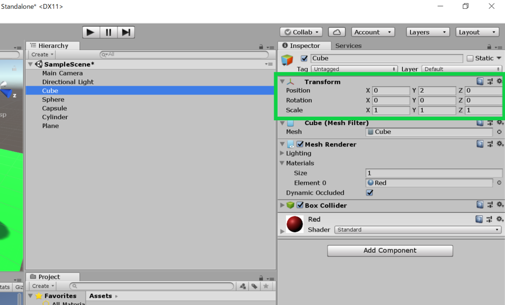 まずは、キューブの座標を変更します。