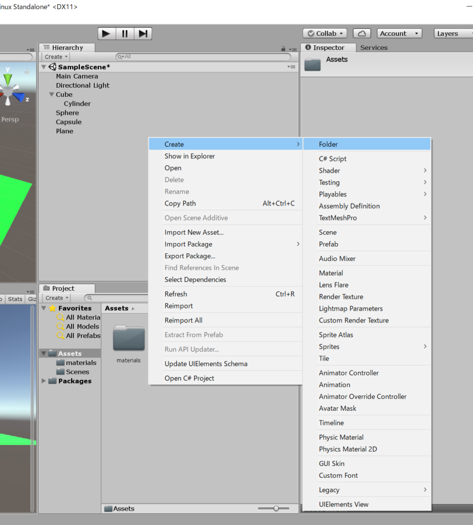 次に、オブジェクト「Cube」をドラックアンドドロップでこのフォルダの中に入れます。
