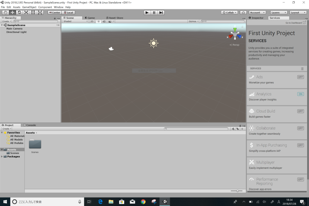 本章は、入門編となっており、簡単なUnity の操作方法を教えていきます。