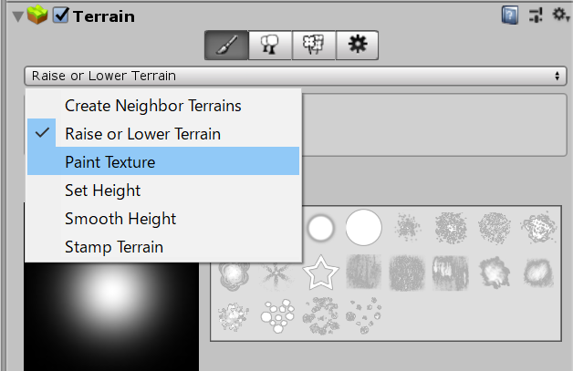 次に、下記のようにドロップダウンから「Paint Texture」を選択します。