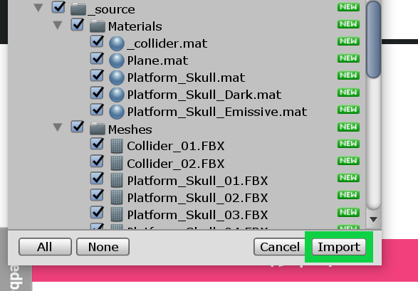 そして、下記のようにたくさん出てくるので「Import」をクリック。